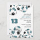 teal black soccer balls kids birthday party invitation