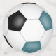 The front and back of each piece of this soccer birthday party confetti features the realistic image of a soccer ball that has teal, black and white panels - by katz_d_zynes