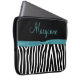 Teal Black Zebra Teal Ribbon Monogram Laptop Sleeve