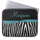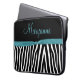 Teal and black zebra stripes with your name. Carry your laptop in style!. Shown on 15" size. If you would like this design on another product, please email me at shutterbug600@yahoo.com or click the "Contact" link under the product.please Note: this is not a real ribbon but a graphic image.