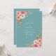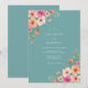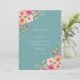 A watercolor-inspired floral arrangement in hues of coral, peach, and pink adorns this design. Delicate greenery complements the blooming accents, creating a romantic and whimsical atmosphere.