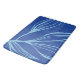 This bath mat features an illustrated, abstract close-up line drawing of a marine plant. The colours are shades of blue. There is a custom text area for your family name or home name. Perfect for beachy, coastal or nautical theme decor.