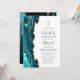 Teal Blue Agate Gold Glitter First Holy Communion Invitation