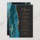 Teal Blue Agate Gold Modern Script Wedding Menu