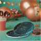 These elegant modern wedding paper plates feature a teal blue watercolor agate geode background trimmed with faux gold glitter. Personalise them with the names of the couple in gold-coloured handwriting calligraphy over a large ampersand, and the wedding date in copperplate font.