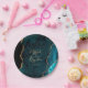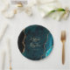 Teal Blue Agate Gold Script Wedding Paper Plate