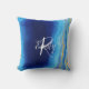 Teal & blue Agate Marble Abstract Name Monogram Cushion