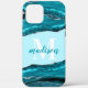 Teal Blue Agate with Silver Glitter Monogrammed Case-Mate iPhone Case