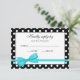 A stylish black polka dot pattern with a teal blue ribbon illustration is featured on this RSVP response card. Easily customise with your information. Designs are flat printed illustrations/graphics - NOT ACTUAL RIBBON.