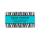 A stylish teal blue and black zebra pattern return address label.