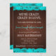 Rustic teal blue and brown country wedding invitation. We're crazy Crazy in love rustic country brown and teal blue wedding invitations are easily customised for your event.