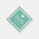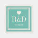 Personalised teal / turquoise blue and ecru creme colour monogram paper napkins for wedding. Elegant wedding party design with name initial letters of bride and groom. Classy ticket border with cute heart and date of marriage. Romantic love theme.