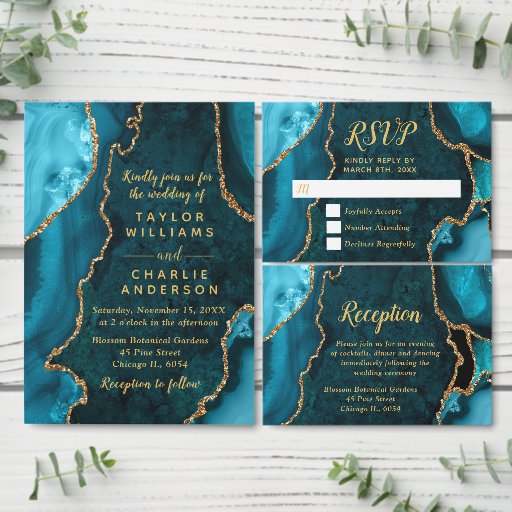Teal Blue and Gold Agate Marble WeddingDesigned by Kirsty W