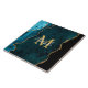 This tile features an elegant and glamourous agate marble background with geode gemstone detailing and faux gold glitter accents. The monogram combines handwritten script and modern sans serif fonts for a classy and sophisticated look. This will make the ideal gift as it can be customised with a name and initial. The deep teal blue hues make it perfect for autumn fall and winter.