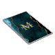 This notebook features an elegant and glamourous agate marble background with geode gemstone detailing and faux gold glitter accents. The monogram combines handwritten script and modern sans serif fonts for a classy and sophisticated look. This will make the ideal gift as it can be customised with a name and initial. The deep teal blue hues make it perfect for autumn fall and winter.