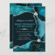 Teal Blue and Silver Glitter Agate Birthday Party Invitation