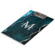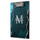 This clipboard features an elegant and glamourous agate marble background with geode gemstone detailing and faux silver glitter accents. The monogram combines handwritten script and modern sans serif fonts for a classy and sophisticated look. This will make the ideal gift as it can be customised with a name and initial. The deep teal blue hues make it perfect for autumn fall and winter.