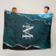 Teal Blue and Silver Marble Agate Fleece Blanket