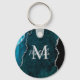 Teal Blue and Silver Marble Agate Key Ring