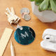 This keychain features an elegant and glamourous agate marble background with geode gemstone detailing and faux silver glitter accents. The monogram combines handwritten script and modern sans serif fonts for a classy and sophisticated look. This will make the ideal gift as it can be customised with a name and initial. The deep teal blue hues make it perfect for autumn fall and winter.