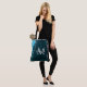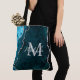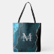 This bag features an elegant and glamourous agate marble background with geode gemstone detailing and faux silver glitter accents. The monogram combines handwritten script and modern sans serif fonts for a classy and sophisticated look. This will make the ideal gift as it can be customised with a name and initial. The deep teal blue hues make it perfect for autumn fall and winter.