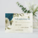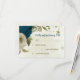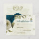 Beautiful romantic wedding response card featuring teal blue and beige flowers and some leaves .