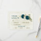 teal blue beige flowers botanical wedding RSVP card