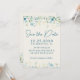 Teal blue beige wildflowers save the date cards. Customise names, dates, and information.