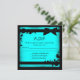 Teal blue black ribbon grunge wedding RSVP Invitation