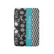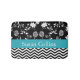 Teal Blue Black & White Chevron & Floral Pattern Bath Mat