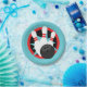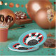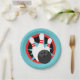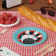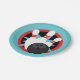 Teal Blue and Red Bowling Pins Paper Plates - Black Centre