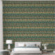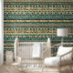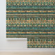 Teal Blue Brown Ornamental Striped Pattern Wallpaper