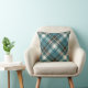 This throw pillow showcases a chic plaid pattern in teal blue and brown, blending timeless style with modern elegance