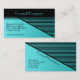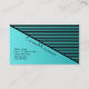 This design is great for anyone. Business or personal card in teal with geometric black accents for your business name on front and you can add it on back. Fill in whatever information you want on back or leave it blank. The design is sure to leave the impression of class on whomever you give it to. You will be remembered once this card is seen. The pertinent information is accented in a very easy to read way that makes it easy to find among hundreds of saved cards each customer has.