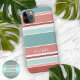 Teal Blue Coral Red Peach Orange White Stripes iPhone Case