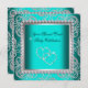 Teal Blue Damask Silver Diamonds Heart Party Invitation