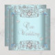 Teal Blue Damask Wedding Silver Diamond Hearts Invitation