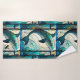 Teal Blue Dolphin Look of Stained Glass Bath Towel Set