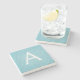 Teal Blue Elegant Glitter & Sparkle Monogram Stone Coaster