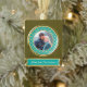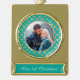 On this elegant Christmas ornament, your own photograph takes centre stage inside a thin shiny gold frame, which is placed on a pretty teal blue background decorated with a gold heart pattern. Your custom text is in pale gold on a matching banner. Beautiful for a newlywed couple's 1st Christmas keepsake.