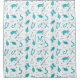 Teal Blue Fishing Seamless Pattern Monogrammed Shower Curtain
