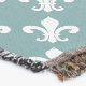 Teal blue fleur de lis pattern throw blanket. Customisable background colour. Other decoration colours also available. Elegant design for cosy home. Classy decor for your house. Vintage weathered look symbol.