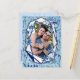 Teal Blue flowers on a sculpture textured backing Announcement Postcard
