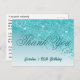 Teal Blue Glitter, 90th Birthday Thank You Postcard