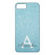 Teal Aqua Blue Faux Glitter and Sparkle Elegant Monogram Case. This case can be customised to include your initial and first name.