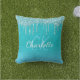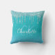 Teal blue glitter drips aqua sea green monogram cushion