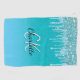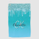 A teal, blue and green gradient background decorated with faux silver glitter drips, paint dripping look. Personalise and add a name, your monogram initials. The name is written with a hand lettered style script.