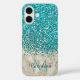 Teal Blue Glitter, Grey Marble Mobile Phone Case. Personalised with your name and monogram.