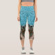 Teal Blue Glitter Leopard Print Abstract Capri Leggings