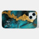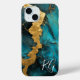 Teal Blue Gold Abstract Marble Monogram Case-Mate iPhone Case